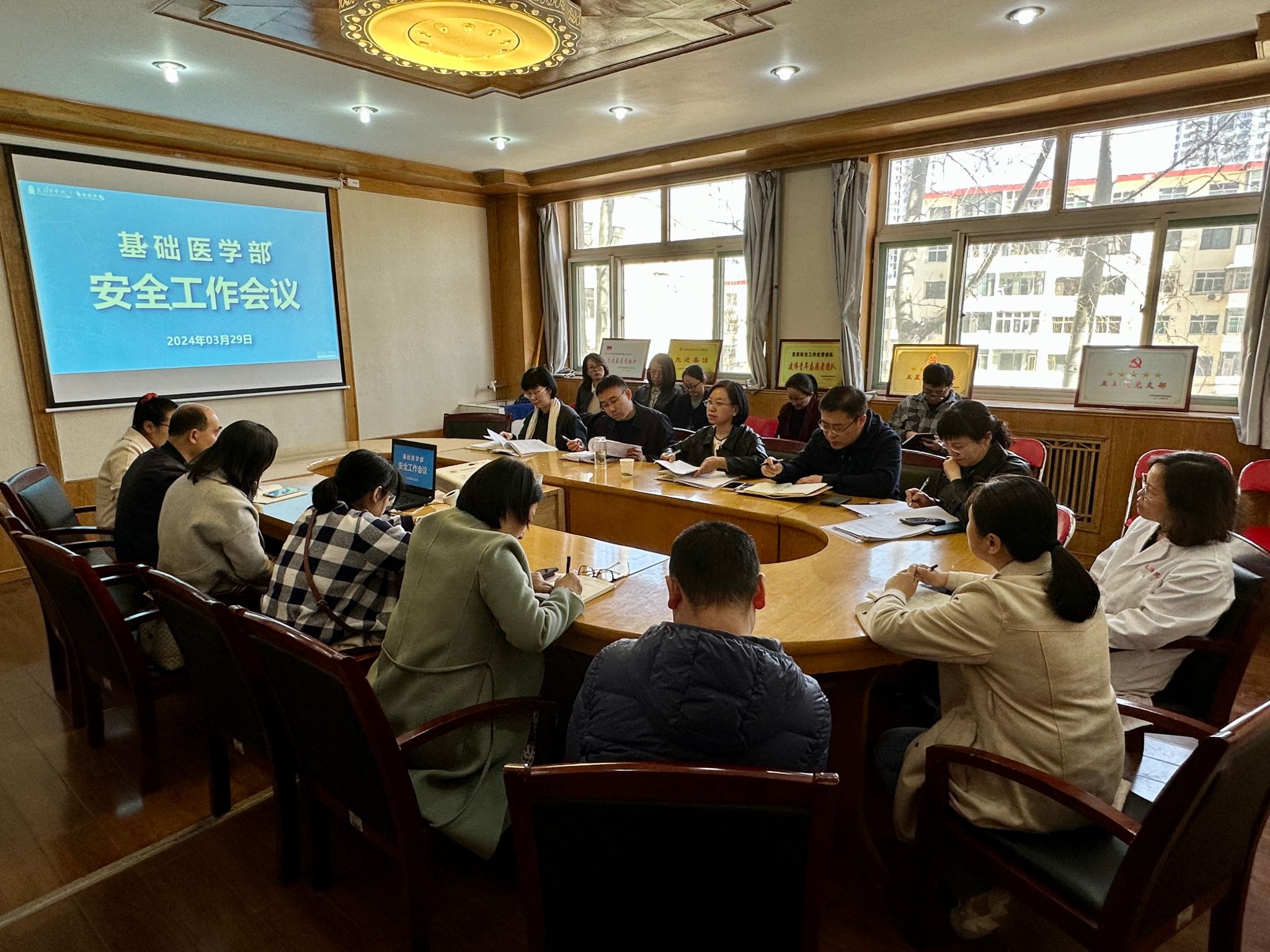 3月29日上午,基础医学部召开了安全稳定工作会议,基础医学部党政领导班子,党支部书记,教研室、实验室主任,辅导员参会。会议由基础医学部副主任原丽主持。