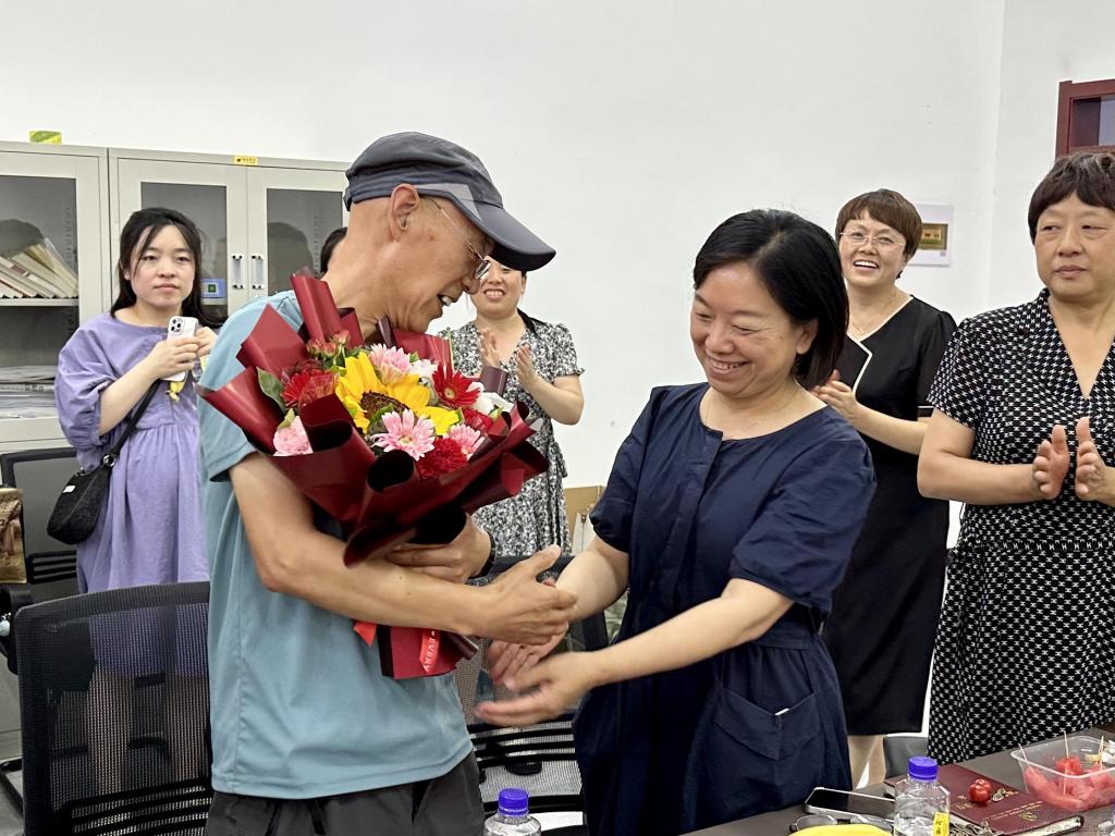 张毅强与李萍一起为张翠英主任和郭金虎老师献上鲜花,表达了对张翠英和郭金虎老师的感谢。最后,全体人员进行了合影留念。