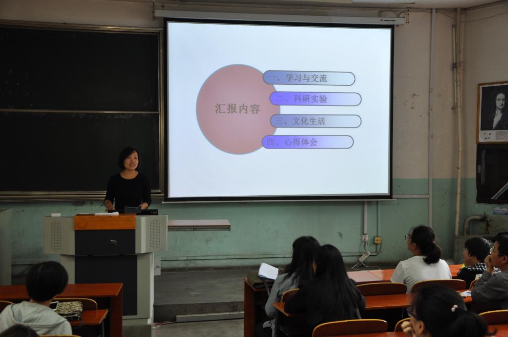 张丽娜老师从为什么访学、访学中的点滴、反思与收获、科研四个方面作了详细介绍,给大家分享了自己的总结:科研是一条充满坎坷的荆棘路,但它绝不会辜负你的勤奋与才华。栗学清老师从学习交流、科研实验、文化生活、心得体会等方面为大家进行了分享。宋少娟老师谈了自己在访学中的几点经验:课题选择上紧抓迫切需要解决的社会问题;多个实验成员同时进行;一个人负责一部分内容;及时申报成果。赵娜老师分别从课程活动、学术活动、科研工作与成果、心得体会、收获与感谢几个方面作了交流。李莉娜老师则分享了自己访学中的研究课题。他们丰富的经历、翔实的内容,引发了广大老师和员工的共鸣。