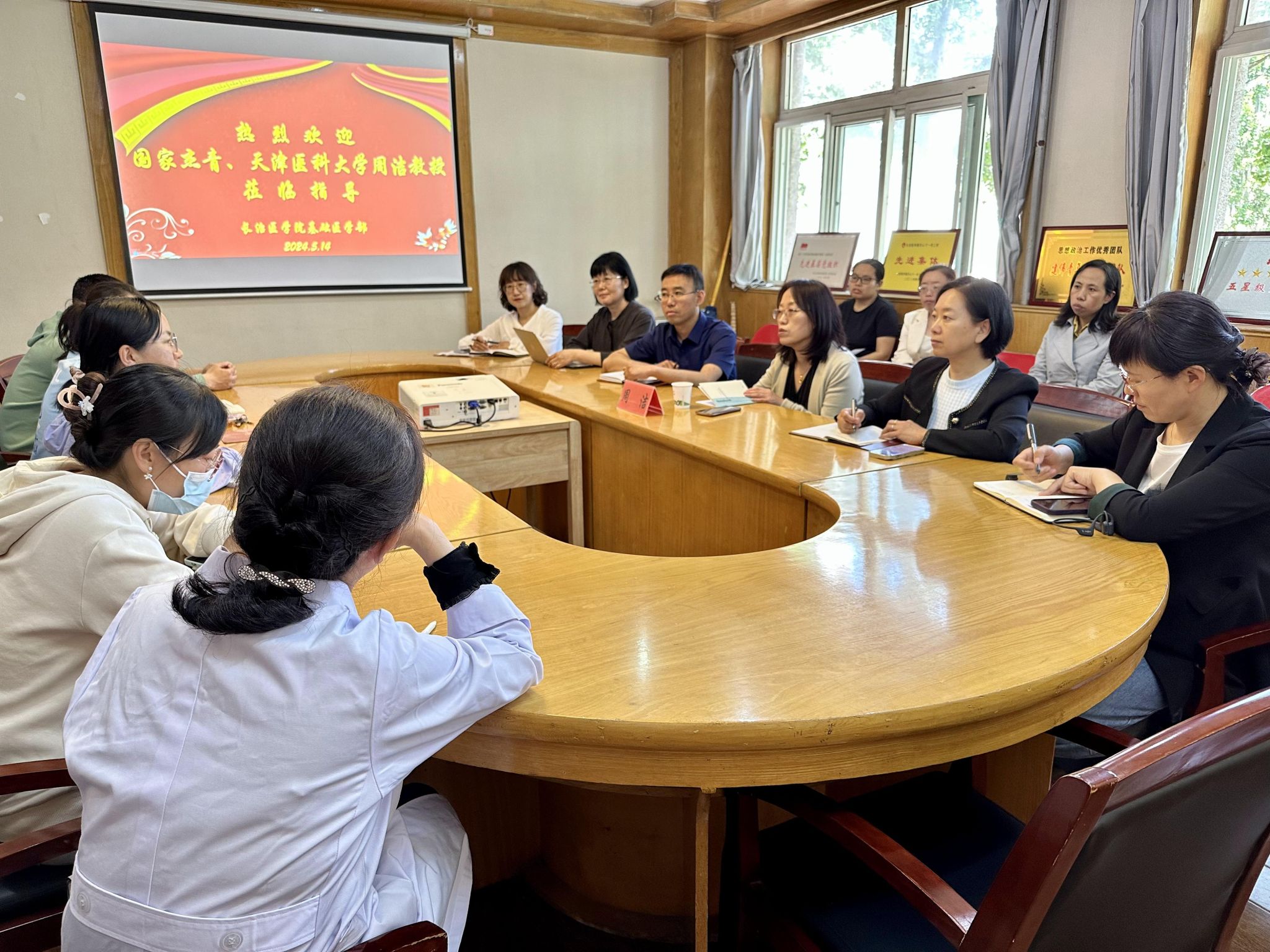 随后,周洁与基础医学部教师代表进行座谈,围绕多个科研项目展开讨论,内容涵盖了肿瘤及相关疾病的跨学科研究、微生物及其生物活性物质对神经免疫系统的影响以及卵巢衰老的影响等,强调了跨学科学习和合作的重要性。