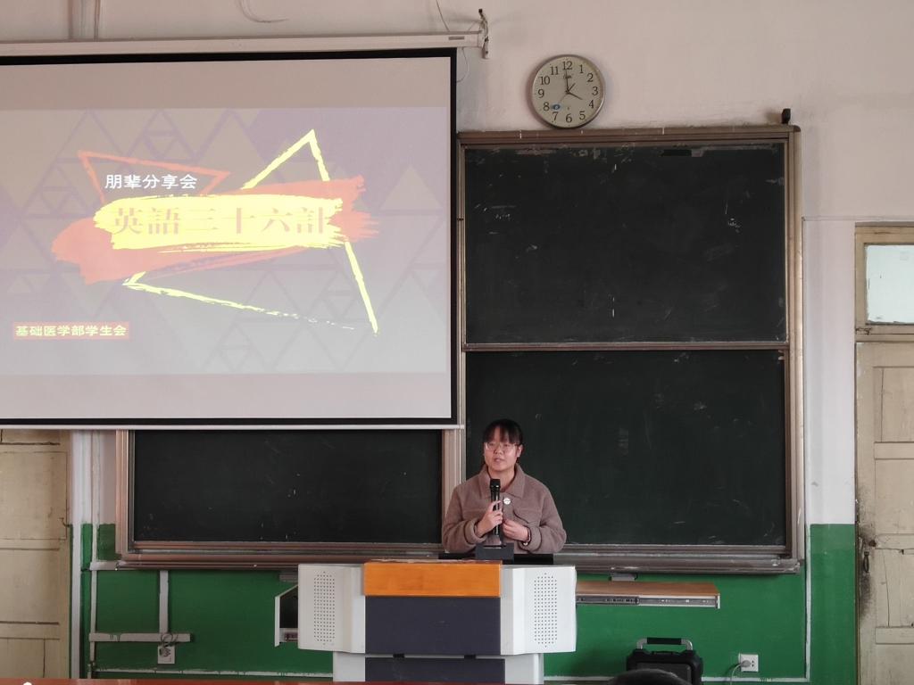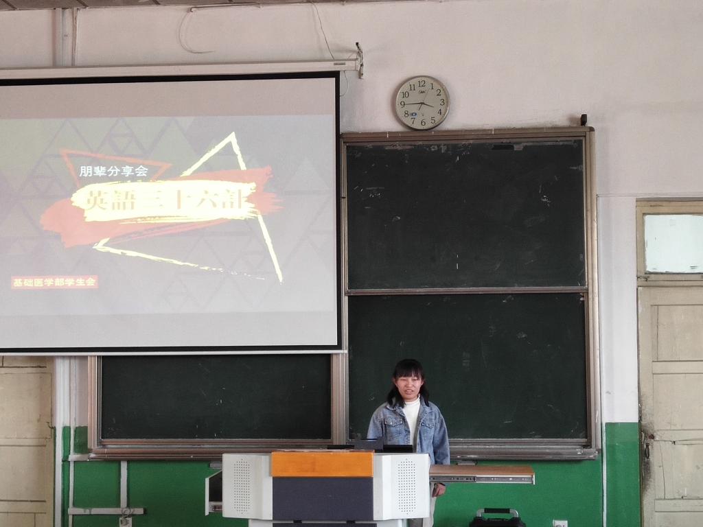 2019年3月30日下午3点,基础医学部在北区6教举办了“朋辈分享会“第一期——英语三十六计。交流会邀请了来自医学实验技术16、17级的五位英语学霸,她们分别是梁梦蕊,南新梅,李惠敏,张倩倩和刘舒静。