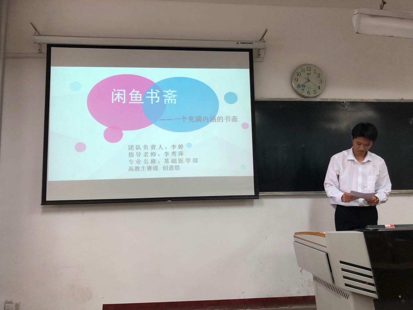 本次入围校级选拔的共有80支队伍,并于6月16日进行了路演,基础医学部派出的三支队伍前期做了充分的准备,关于策划书的书写,我们力争做到完美。负责演讲解说PPT的同学在比赛中结合准备的精美的PPT,针对项目概要、项目介绍、市场调研及可行性分析、财务分析、市场营销计划等模块介绍了自己的项目,向观众和评委们阐述了自己的创新思维与创新理念。