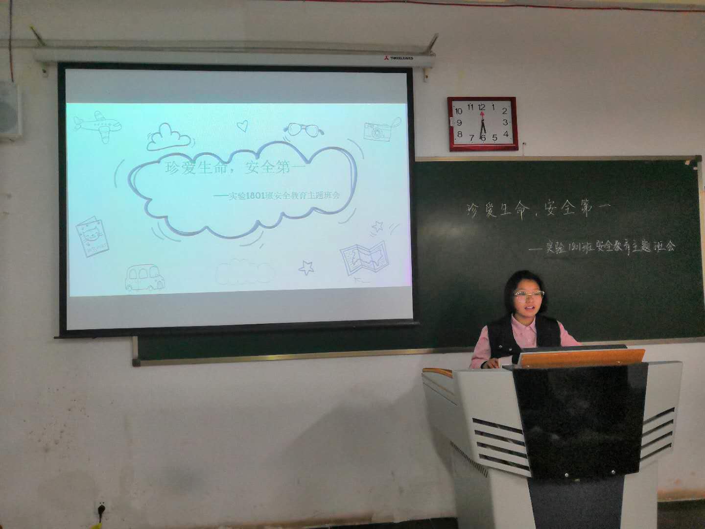 2018年10月16日上午九点半,医学实验技术专业1801班在27教举行了开学以来的第二次班会,响应“平安校园 我在行动”的号召,围绕“珍爱生命 安全第一”的主题开展了形式多样的安全教育活动。